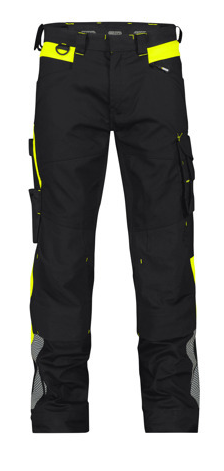PANTALON STRETCH CANTON NOIR/JAUNE AVEC POCHES GENOUX PC 245GR