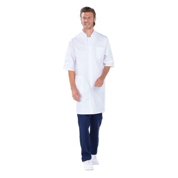 - Fermeture par pressions. - 3 Poches, fentes côtés. - Longueur 100cm. - Manches 3/4.