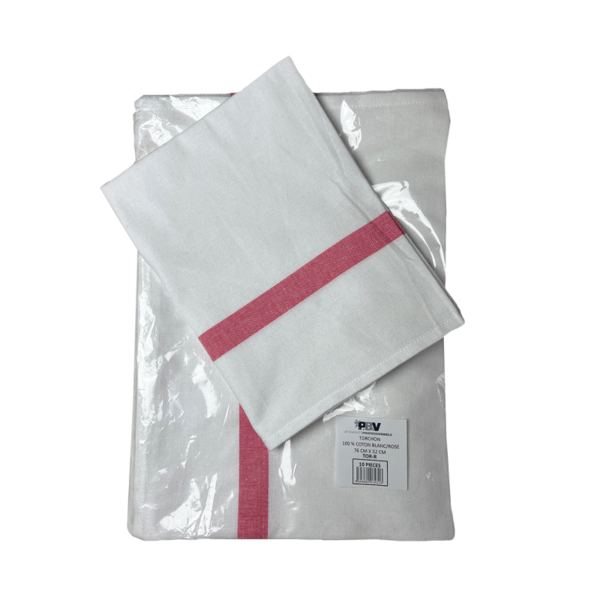 TORCHON BLANC/ROSE 100% COTON 180GR REF.TOR-R