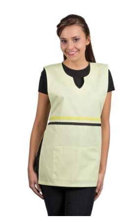 Tablier chasuble Loane 65% polyester/35% coton Fermeture côté par liens 2 poches basses Longueur 75 cm Petite et grande taille Fabriquant : Lotus Blanc
