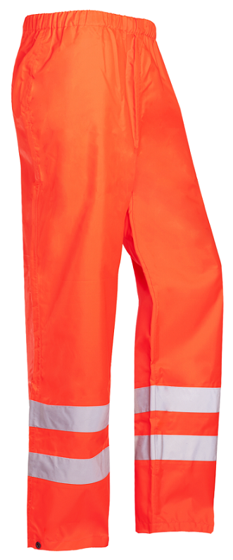 CARACTÉRISTIQUES Pantalon de pluie 100 % étanche (coutures étanchées) Protection contre le vent, respirant Enduction absorbant l'humidité à l'intérieur du vêtement Rétrécissement des jambes par boutons pressions Taille élastiquée Intérieur : doublure fixe polyamide MATIERE 100 % polyester avec enduction PU NORME EN 471 : 1 2 EN 343 : 3 3 COLORIS Jaune HV. Orange HV. Rouge HV TAILLE S à 3XL